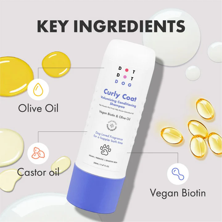 Curly coats vragen om extra zorg – deze shampoo is verrijkt met vegan biotine en olijfolie om de vachtstructuur te versterken en de krullen te hydrateren zonder ze te verzwaren. Hierdoor worden klitten voorkomen, blijft de vacht soepel en is deze makkelijker doorkambaar, ook op lastigere plekken zoals achter de oren of onder de poten.
