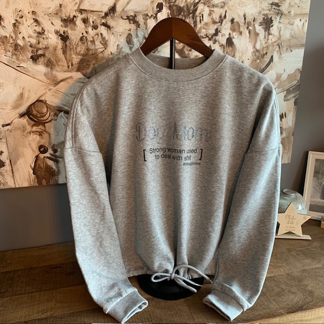 Yes wij dogmoms zijn sterke vrouwen, wij zijn wel wat gewoon en deze trui zegt het helemaal.  Deze nieuwe uitgave is echt een heel fijn model om te dragen.  Door de trekkoortjes kun je hem aanpassen naar wens waardoor ze heel mooi zitten.