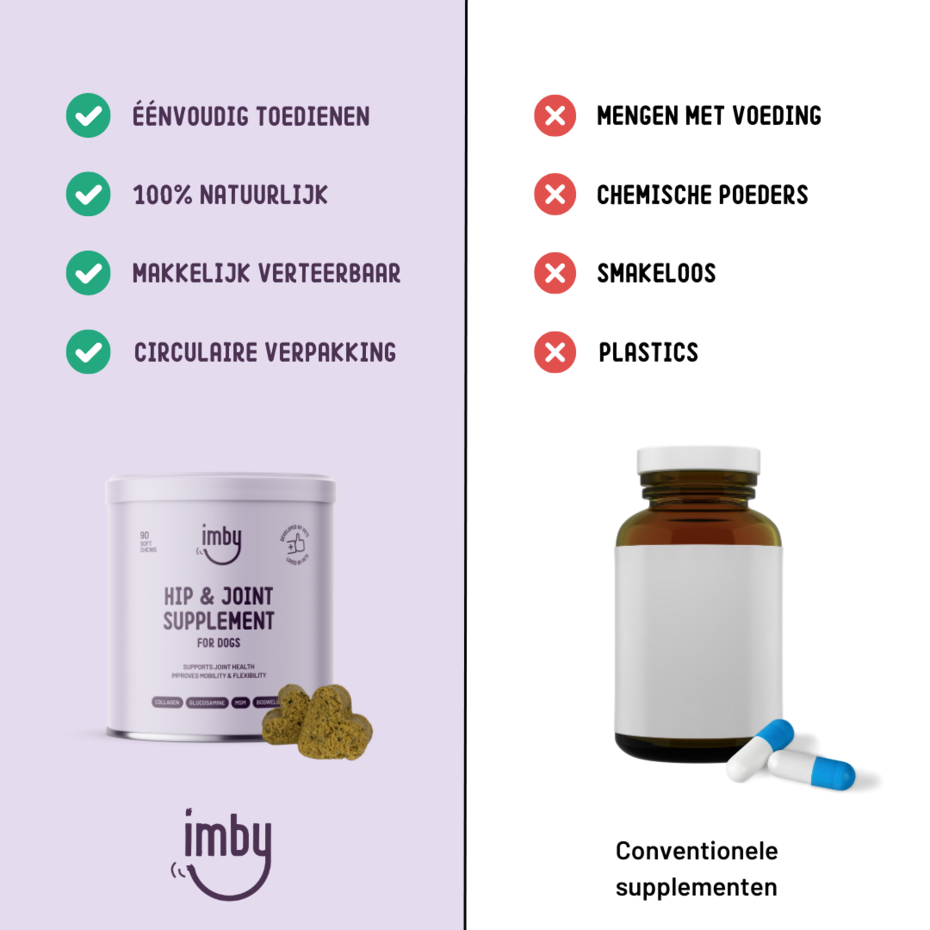 Het revolutionaire heup- en gewrichtssupplement voor honden – Imby Hip & Joint supplement – is ontwikkeld door Imby Pet Food om het algehele welzijn van de hond te verbeteren.