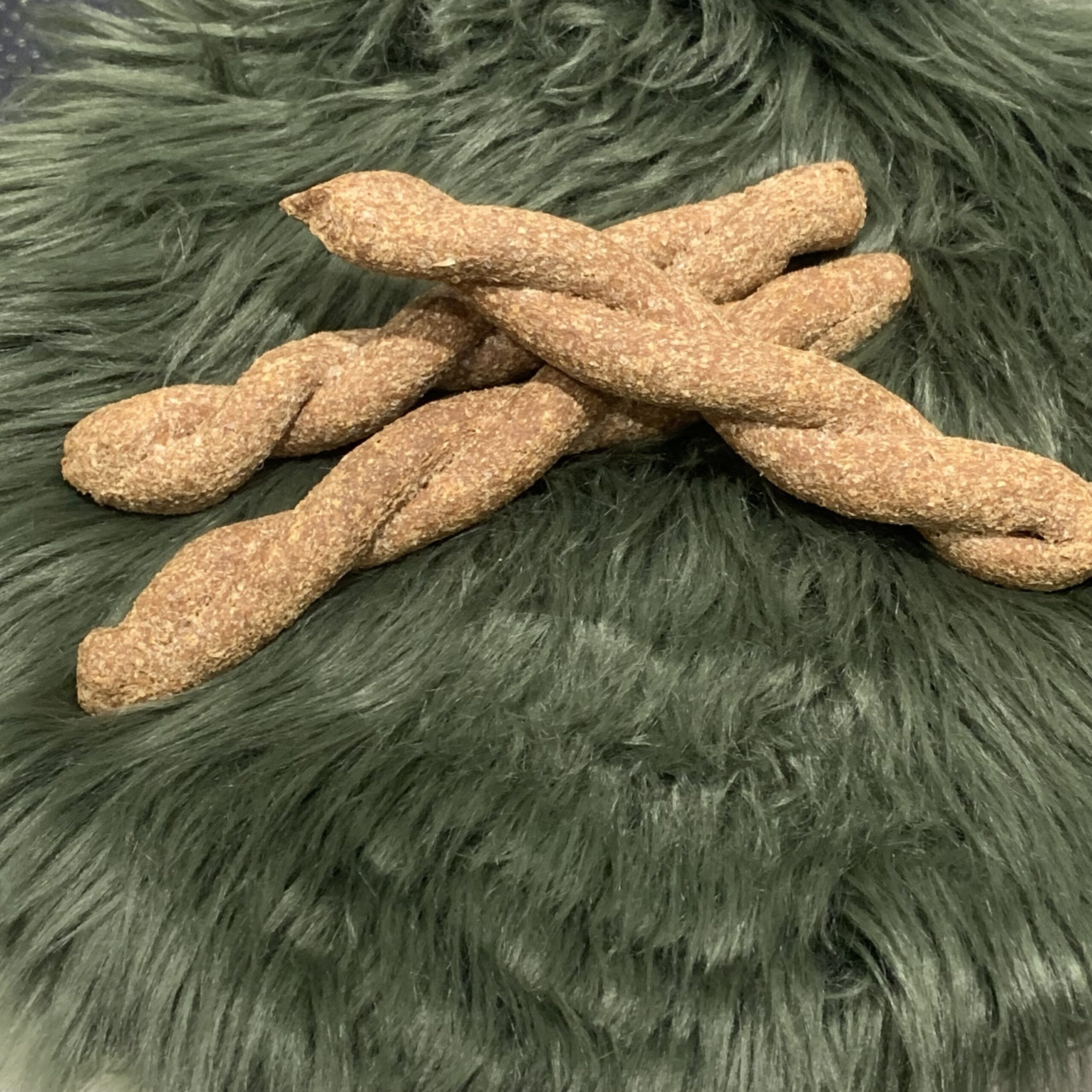 kauwrollen en grote koeken gemaakt op dezelfde basis van ons koekjesdeeg alleen extra lang en dik voor lang knabbelplezier.