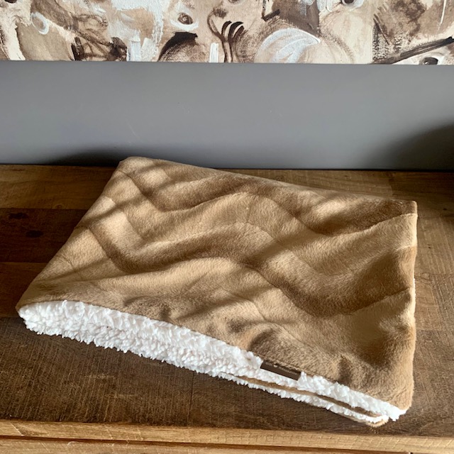 Heerlijk zachte dekens van velboa en bont . De stof voelt zacht en luxueus aan .
